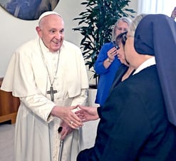 At the meeting’s close, Sister Alicia said the pope joined hands and led the group in an “Our Father” and gave them and their artifacts a papal blessing.