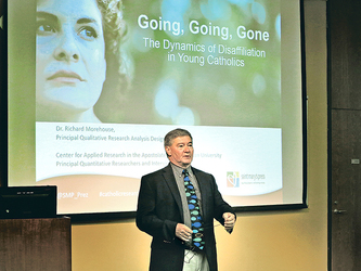 “There are kids sitting in your parish pews and Catholic school classrooms who have already checked out, stopped identifying with being Catholic,” he said. “Many of the parents didn’t know they were waiting to walk away. That has profound implications on how we do ministry today.”