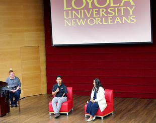 Presley told conference attendees assembled inside Loyola’s Nunemaker Auditorium that he had been adopted from South Korea as a 13-month-old and raised in Oklahoma in a happy family of 12 children.