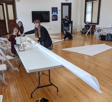 In the end, the students made their final set of sails out of lightweight dacron – a main sail measuring in at 17 feet tall and 19 feet wide; and a smaller companion sail called a jib.